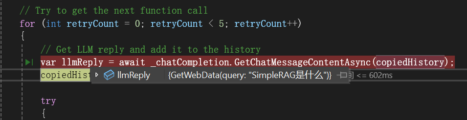 When execution starts, the LLM will determine that it needs to call this function, and the parameter is the question: